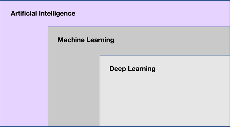 The following graph illustrates the relation between AI, ML and Deep Learning.
